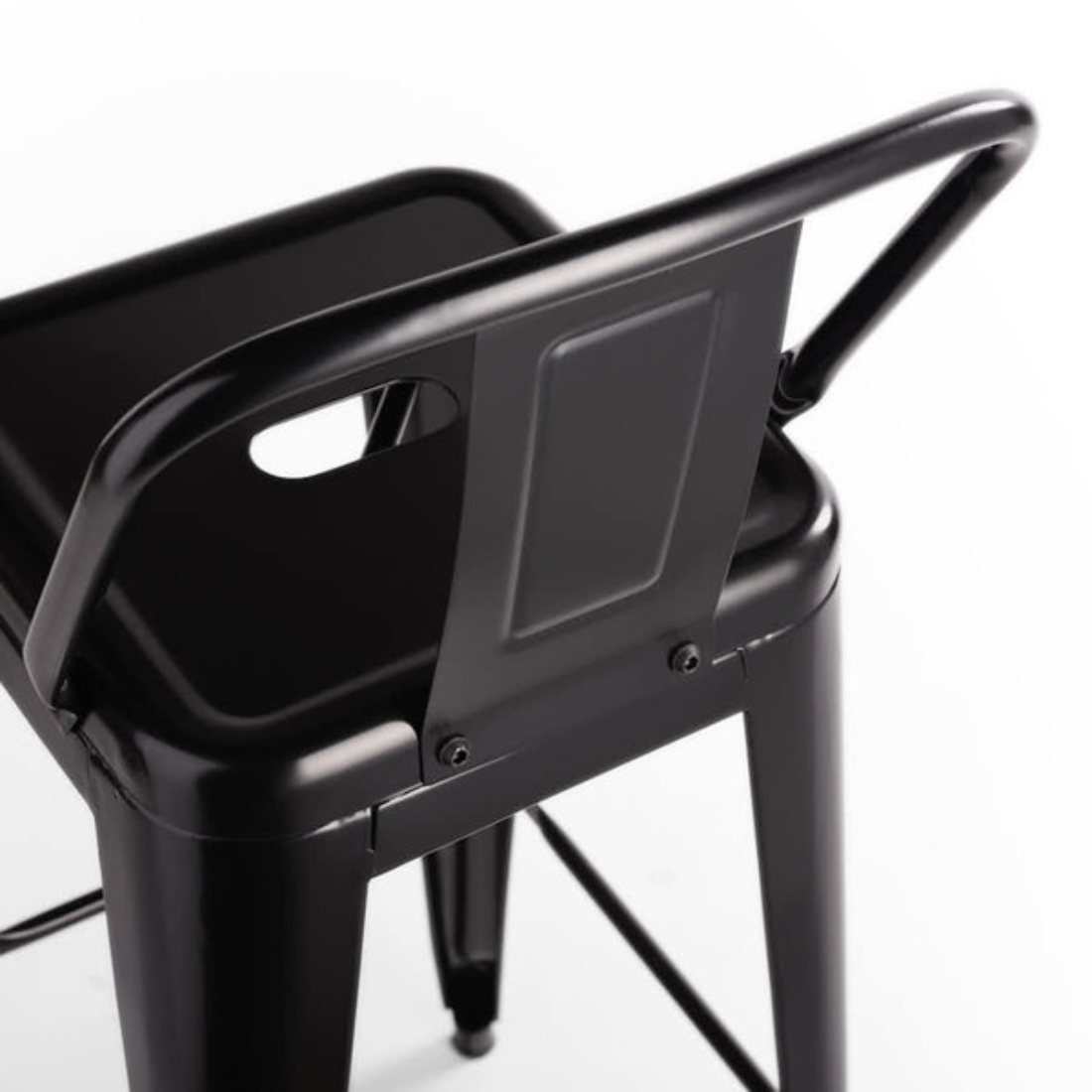 Piso de estilo industrial fabricado en metal galvanizado, perfecto para restaurantes o para el hogar. Ofrece durabilidad de grado comercial y un estilo moderno y robusto. El ángulo del respaldo del taburete está formado con un diseño ergonómico. Posee goma antideslizante en sus patas para proteger el suelo.