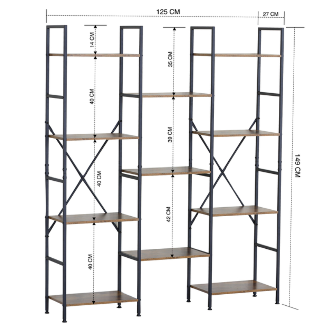 Diseño robusto y funcional en sus espacios. Fabricado con tubos de acero y superficies de PB, este estante combina durabilidad con un estilo industrial moderno, ideal para organizar y destacar cualquier ambiente. Su acabado en color café le da un toque elegante y versátil que se adapta a diferentes estilos de decoración.
