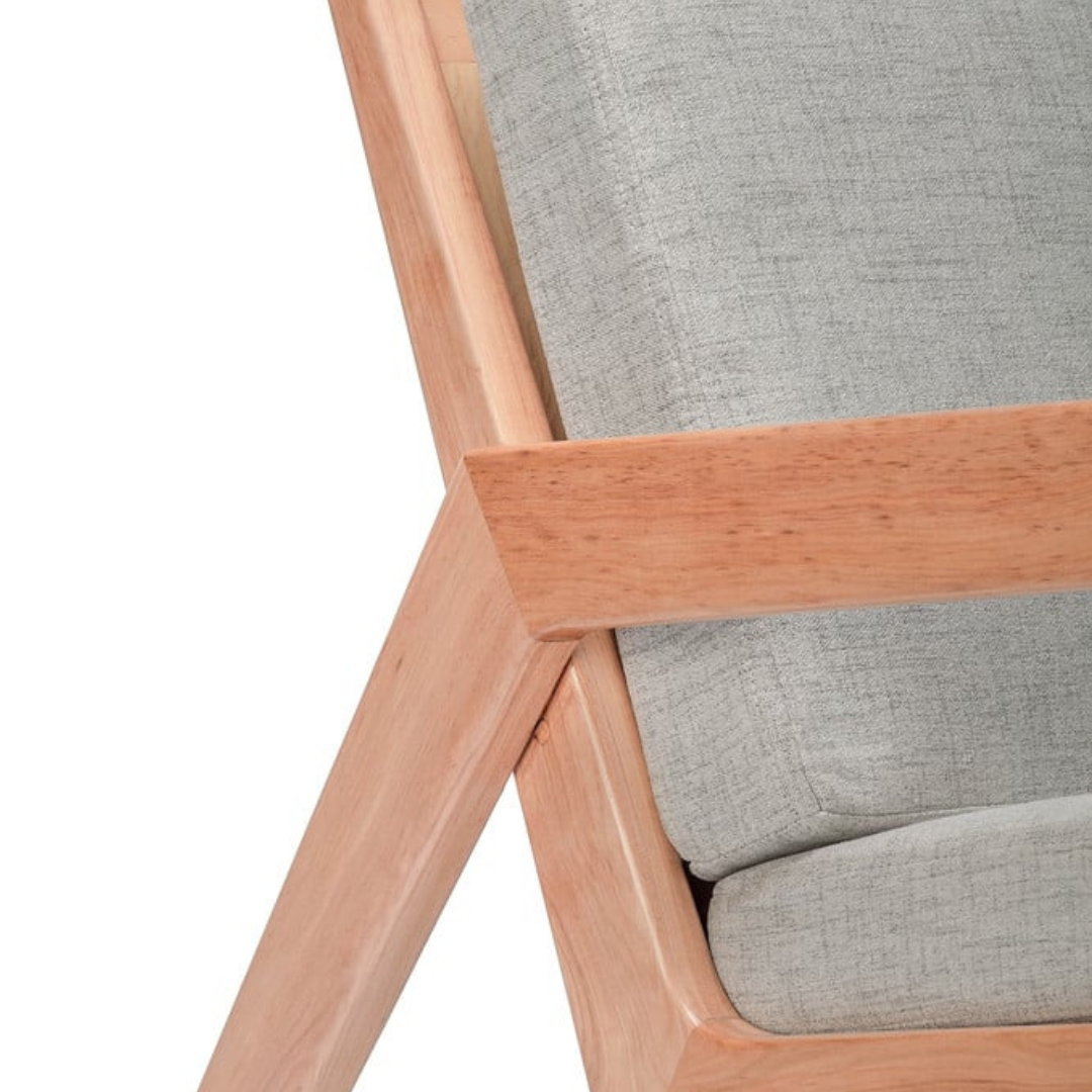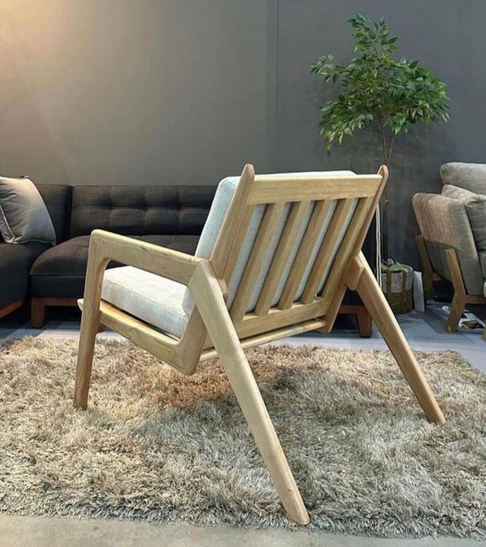 Geometría cálida y carácter escandinavo. Las formas triangulares de sus patas y apoyabrazos transmiten fuerza y personalidad, mientras que los cojines mullidos equilibran la rigidez con una promesa de comodidad. No es solo un mueble, es una pieza que transmite carácter sin alzar la voz.