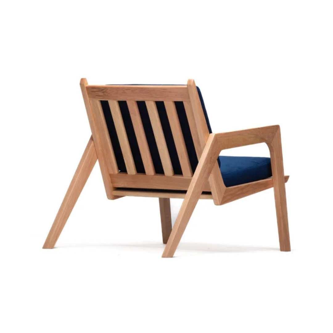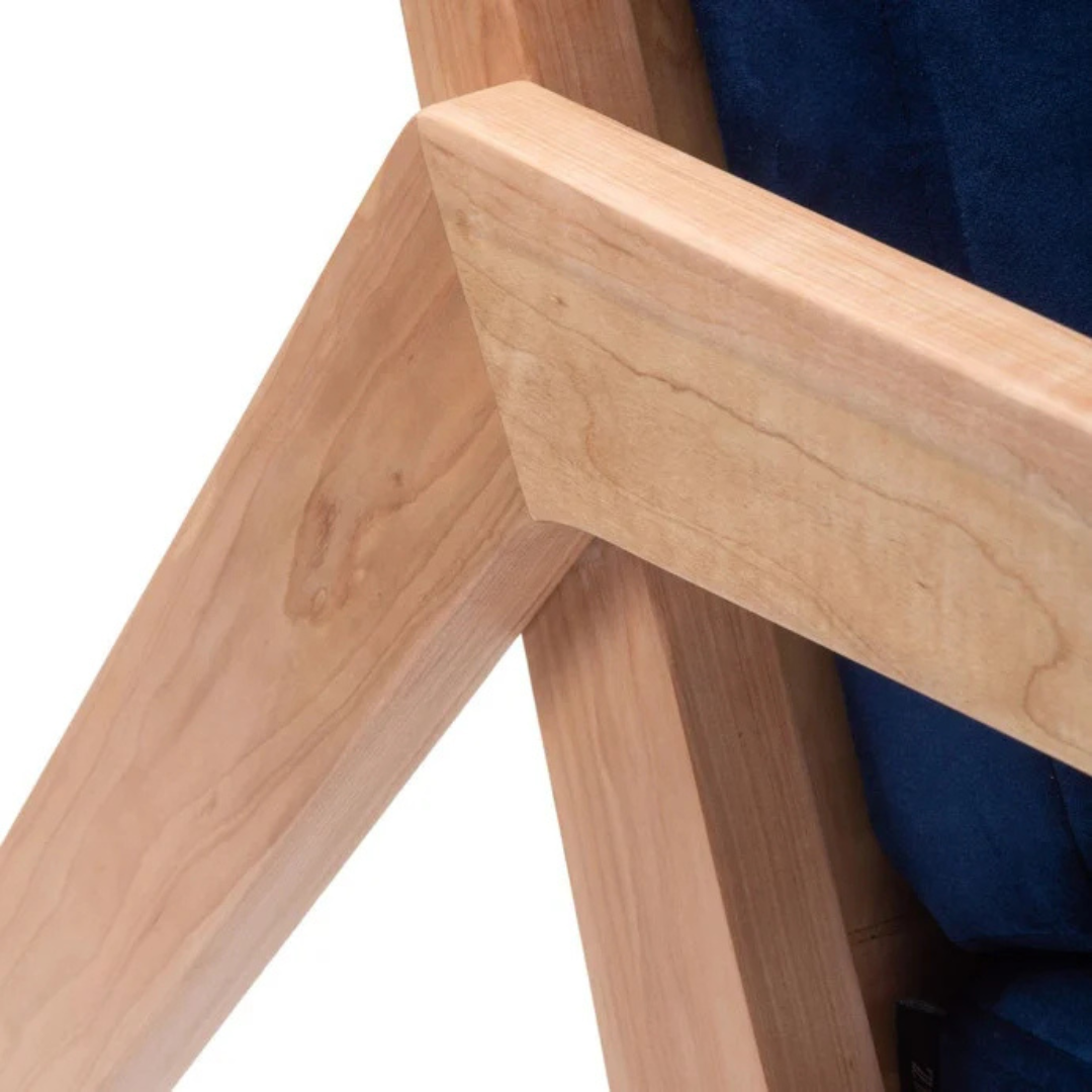 Geometría cálida y carácter escandinavo. Las formas triangulares de sus patas y apoyabrazos transmiten fuerza y personalidad, mientras que los cojines mullidos equilibran la rigidez con una promesa de comodidad. No es solo un mueble, es una pieza que transmite carácter sin alzar la voz.